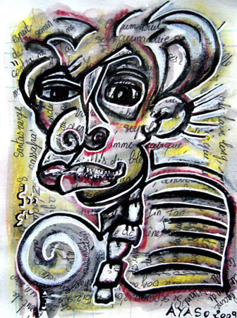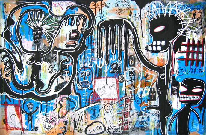 (2009) Parce que rien ne se crée ex nihilo, ni pour lui et donc ni pour moi. Matériaux : Technique mixte toile tendue sur châssis. Dimensions :