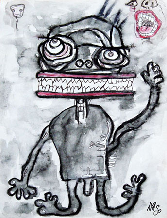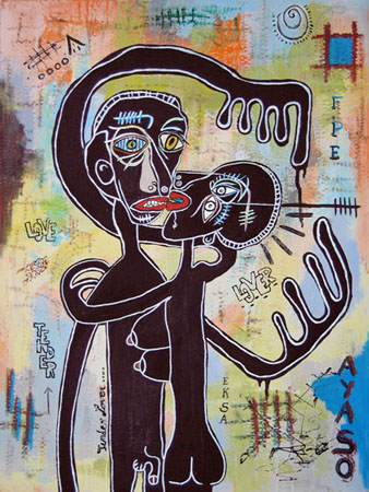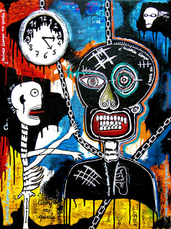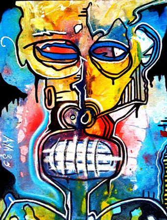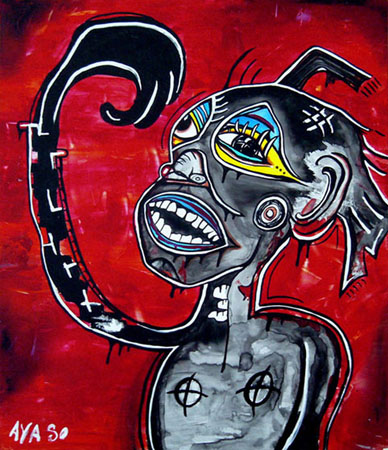 No llego hacer lo que quiero con esta cabeza. Matériaux : Technique mixte sur contreplaqué. Dimensions : 82 X 82 cm