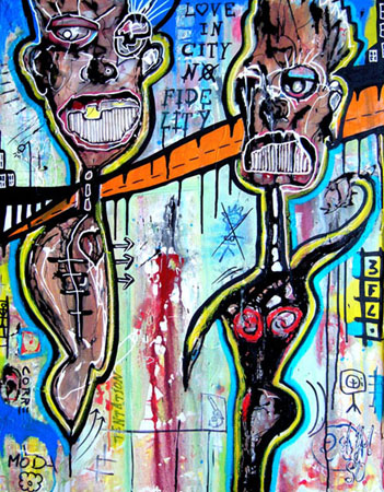 No fidelity. Matériaux : Technique mixte toile tendue sur châssis. Dimensions : 90 X 70 cm