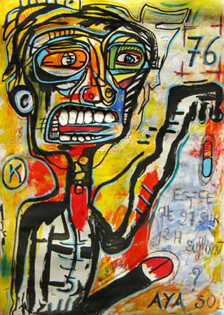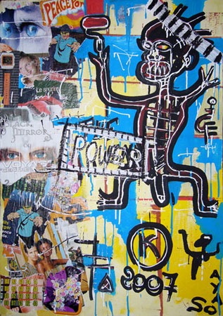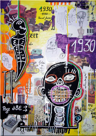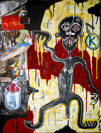 (2008) Matériaux : Technique mixte(acrylique, gouache...) et collage sur toile tendue sur châssis Dimensions : 70 X 50 cm