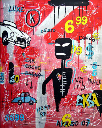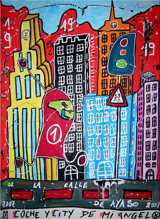 "COCHE Y CITY DE MI ANGEL" à mon bout de chou... (2007) Matériaux : Technique mixte sur toile tendue sur châssis. Dimensions : 87 X 67 cm